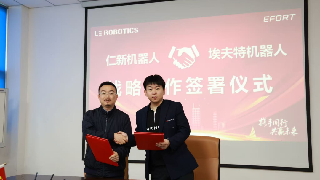 Recently, Wang Fukang, Executive President of EFORT Intelligent Robot Co., Ltd., and Wang Wanjuan, Deputy General Manager of the Marketing Center, led a core team to visit LE Robotics. Hu Haojie, CEO of LE Robotics, received them with his team and participated in the seminar. The two parties conducted in-depth exchanges on cooperation directions in the field of industrial embodied intelligence, and finally officially signed a strategic cooperation agreement, which will carry out in-depth collaboration around technology implementation, commercial scenario expansion, and industrial ecological co-construction.